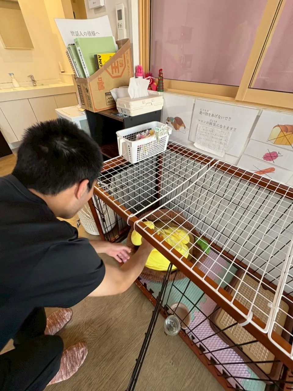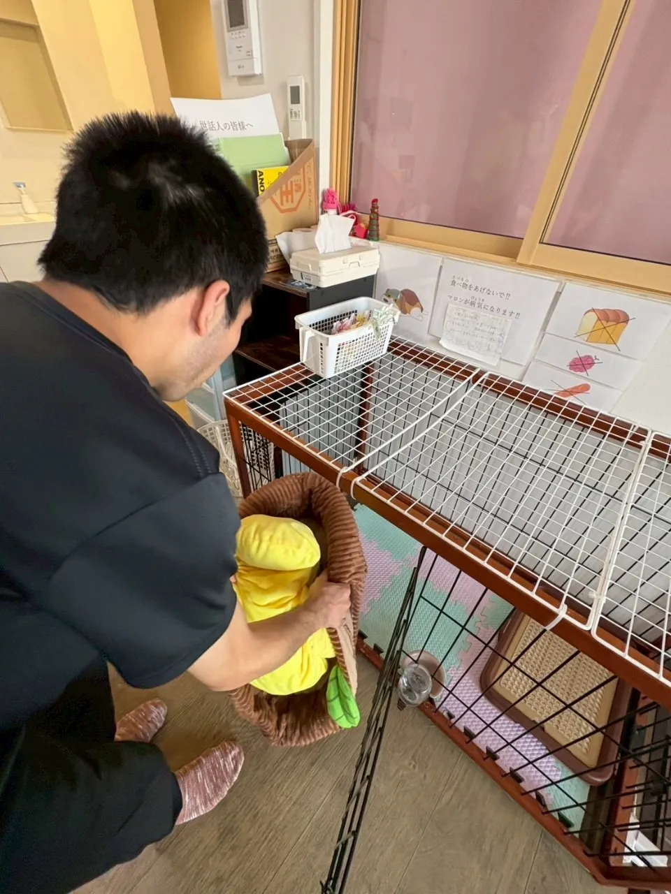 そんなマロンがいつも快適に過ごせるよう、定期的にケージのお掃除やグッズの洗濯を行っています。今日は天気も良くて、すぐに乾きました☀️