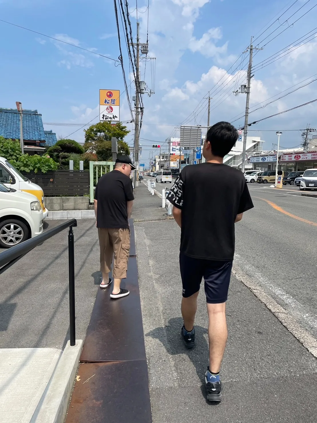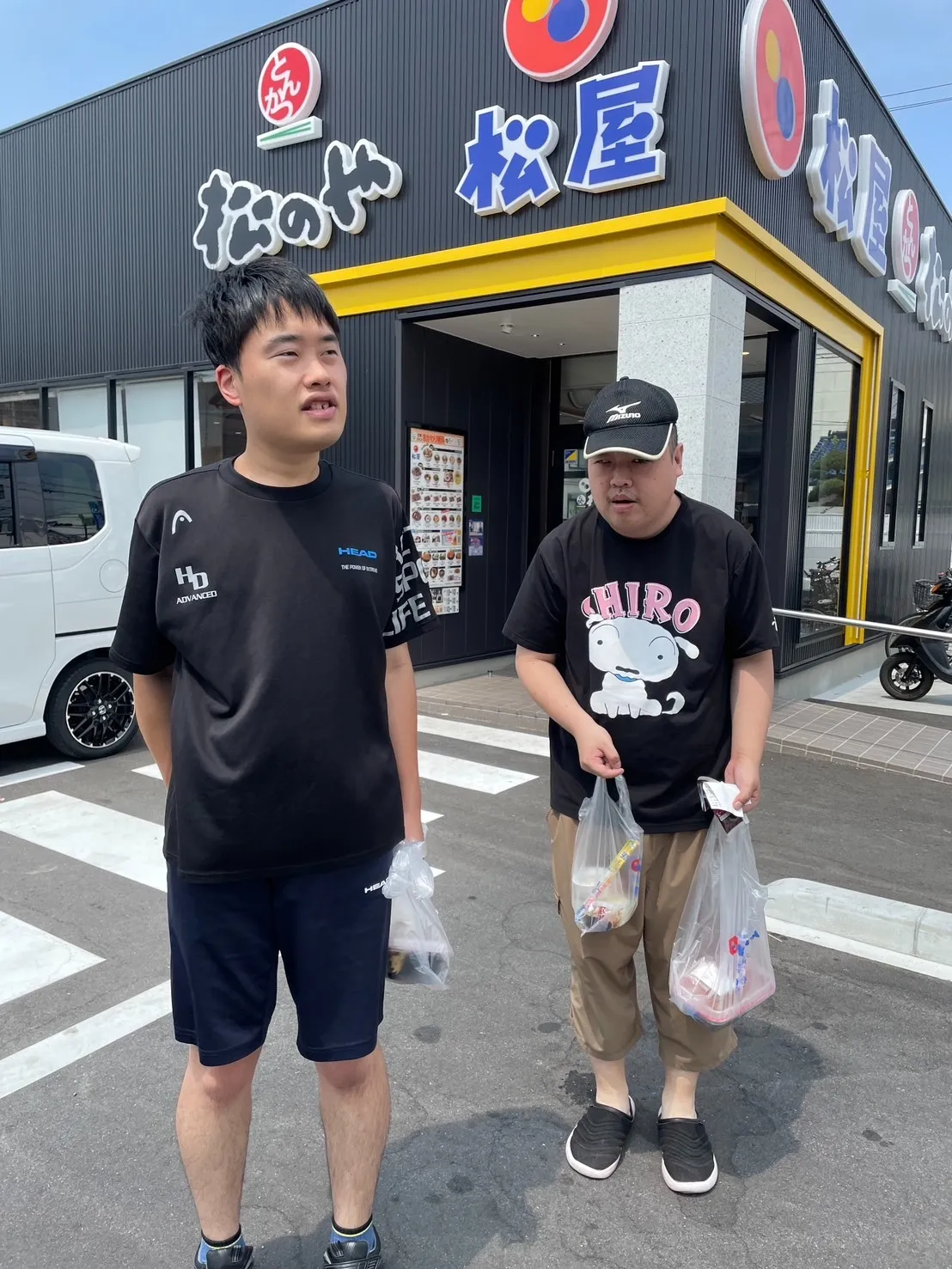 今日はお昼ごはんに、近くの「松のや」へ二人でお弁当を買いに行ってきました。