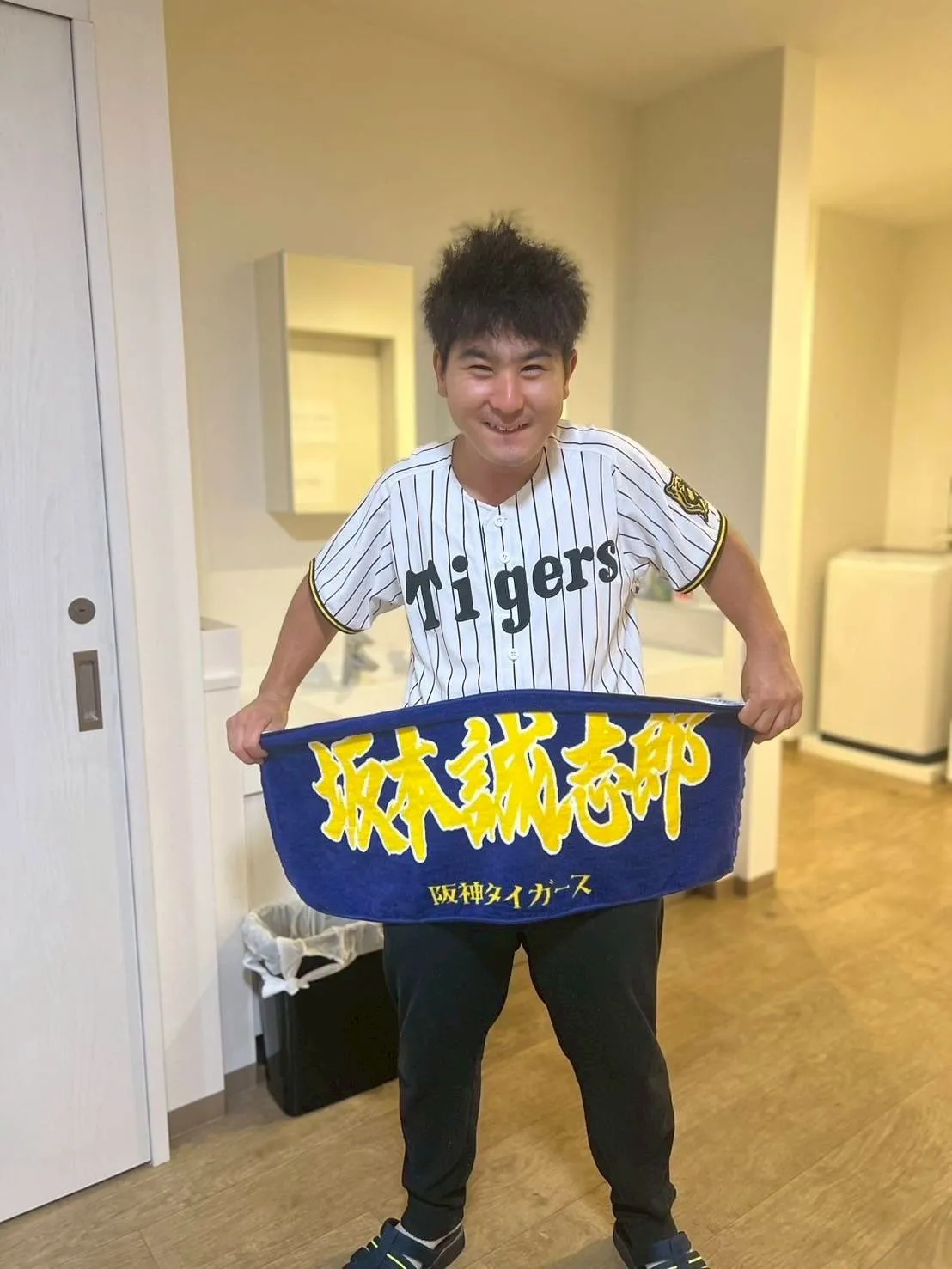 阪神タイガースの優勝にちなんで、利用者様が阪神のTシャツを着て大はしゃぎされていました♪