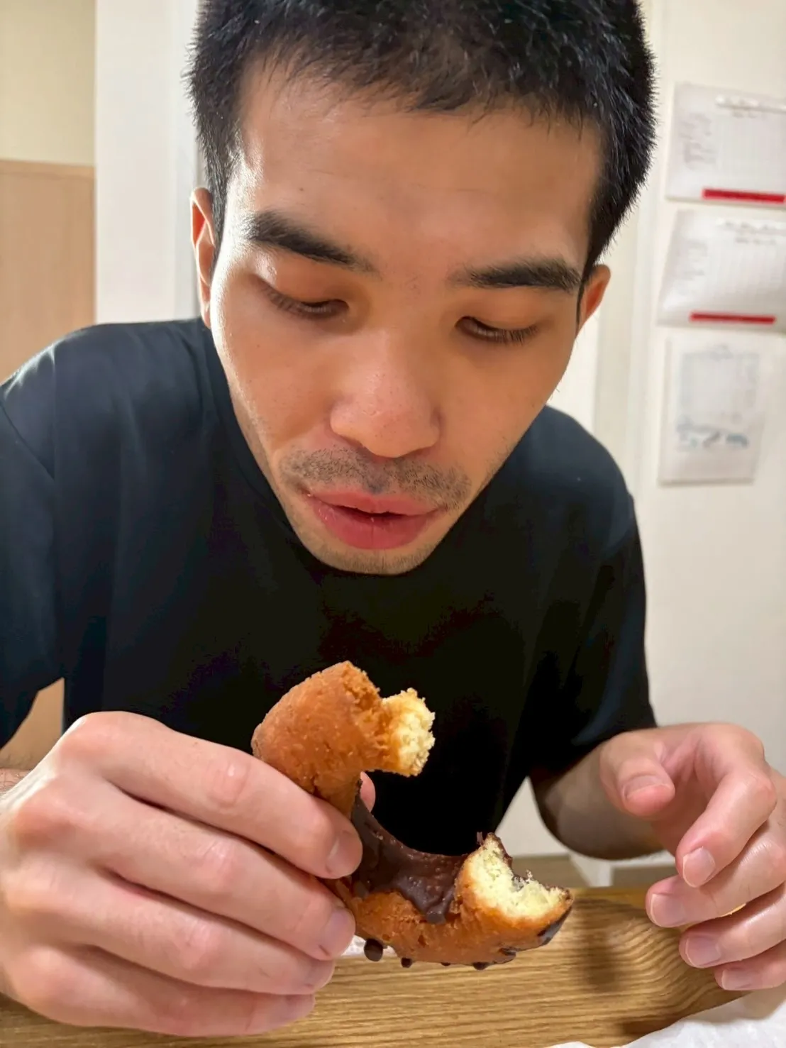 昼食後にはデザートとしてドーナツを召し上がり、おいしそうに笑顔で頬張る姿は、とても幸せそうで見ているこちらも心が温まります(^^)