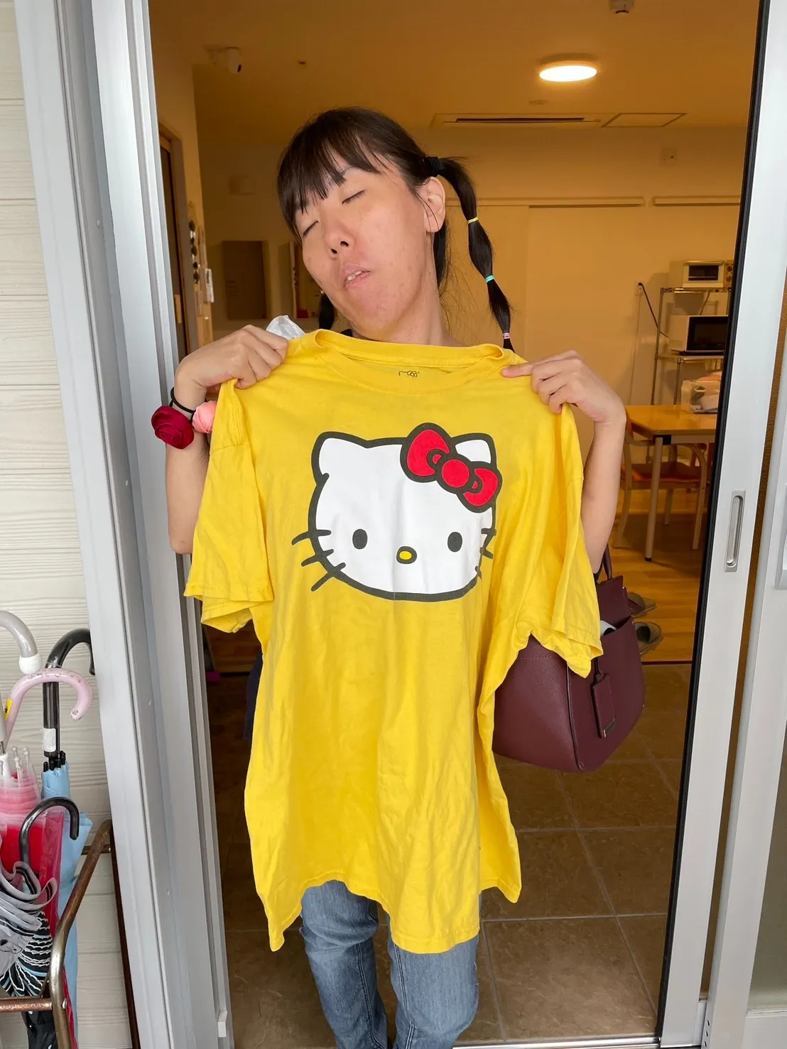 さらに「これお気に入りなんです♪」と、大好きなキティちゃんのTシャツを嬉しそうに披露。
