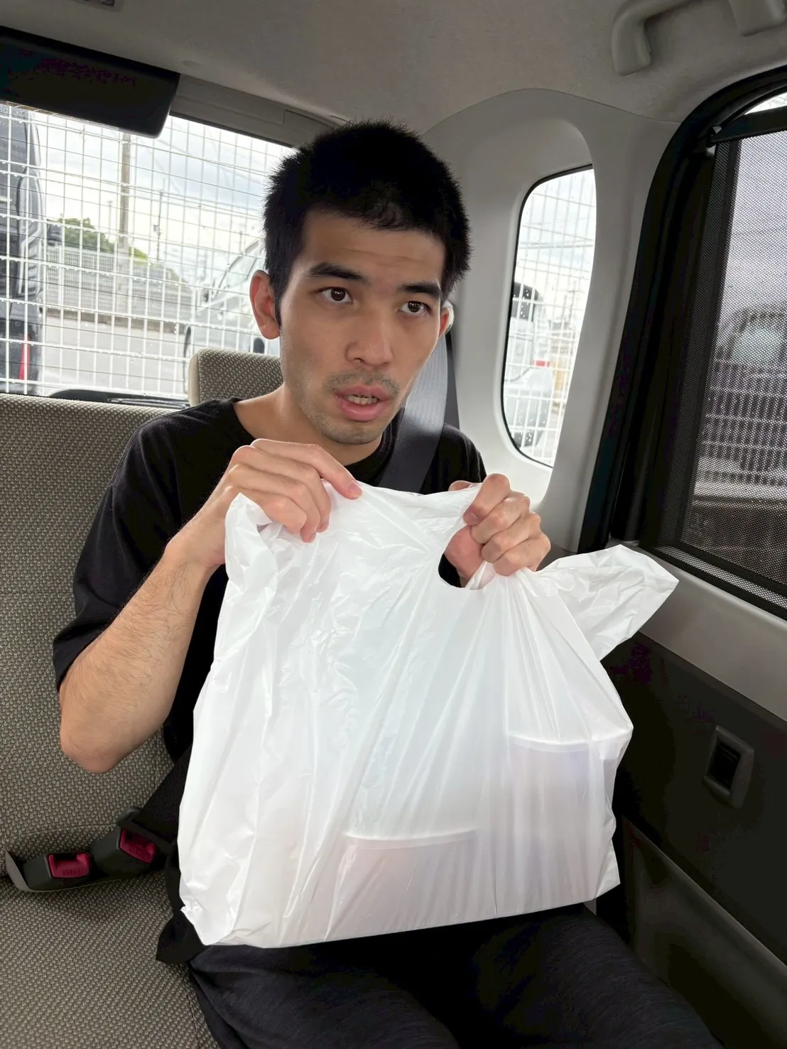 お会計を終え、受け取った牛丼を大切にしっかりと手に持たれていました♪