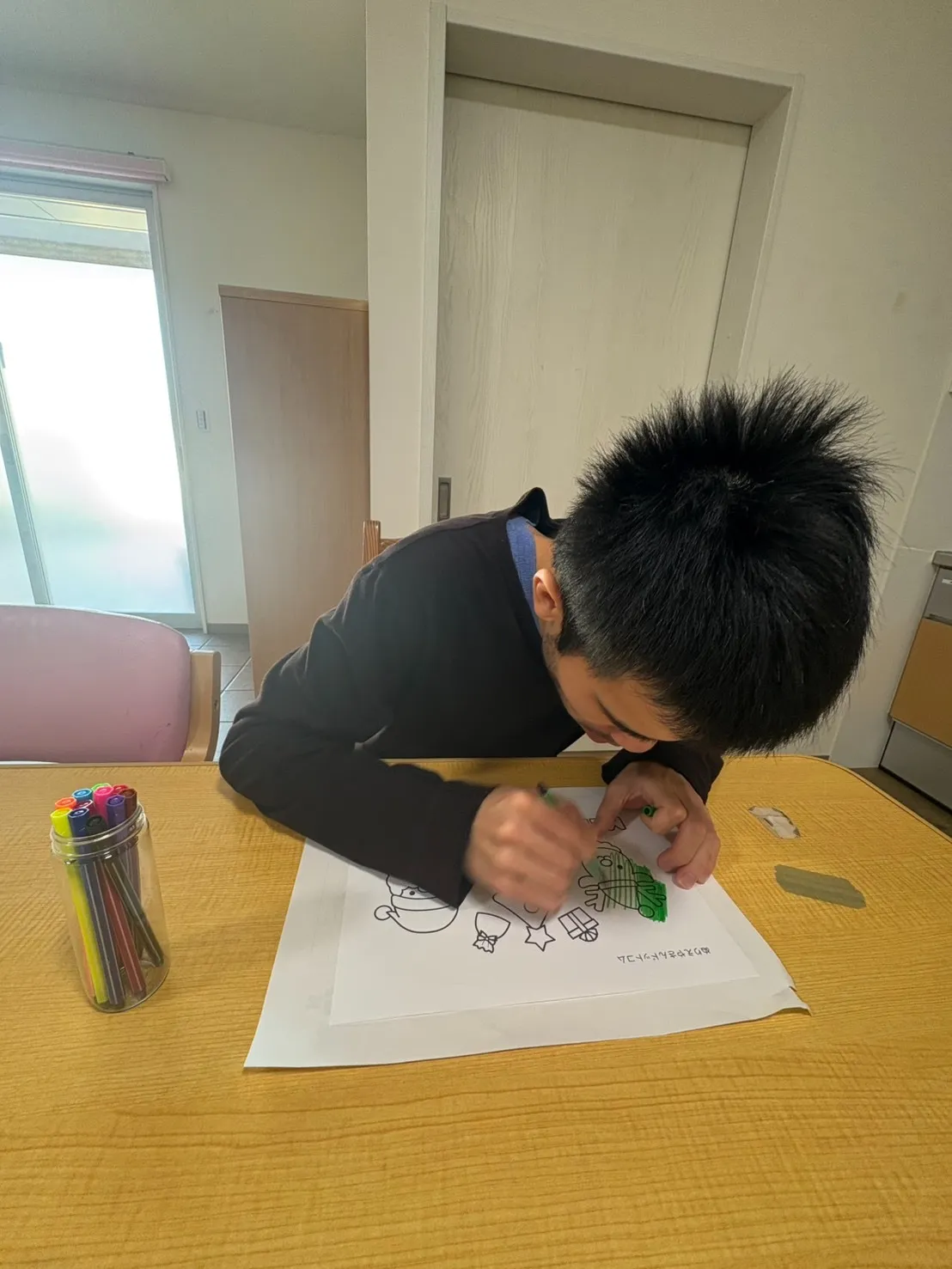塗り絵を通して、クリスマスの楽しさとドキドキ感を一足早く感じられたひとときでした(^^)