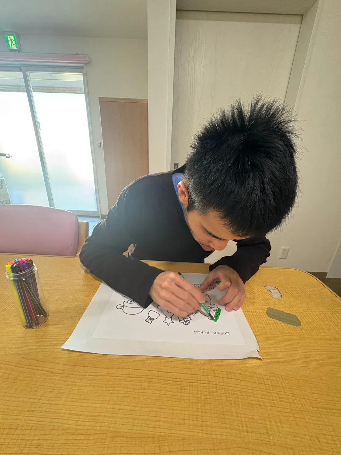 今日の午前中、利用者様がクリスマスの塗り絵を楽しんでくださいました(^^)♪