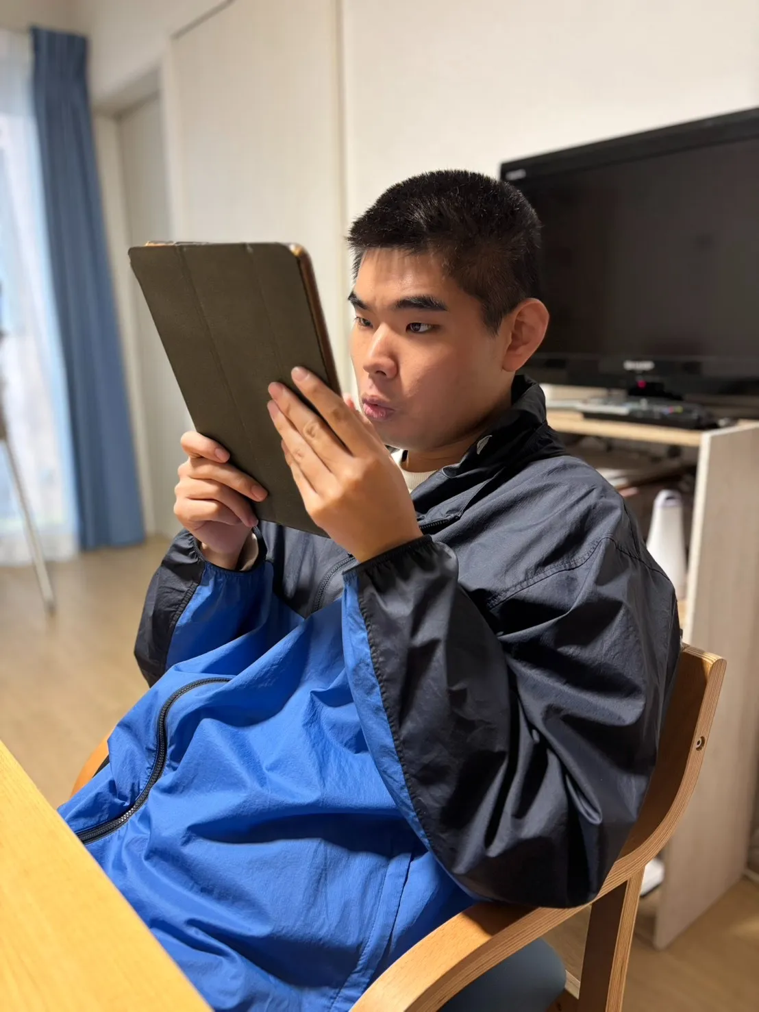 準備が整うと、タブレットをご覧になりながらお迎えが来るのを穏やかに待っておられました。