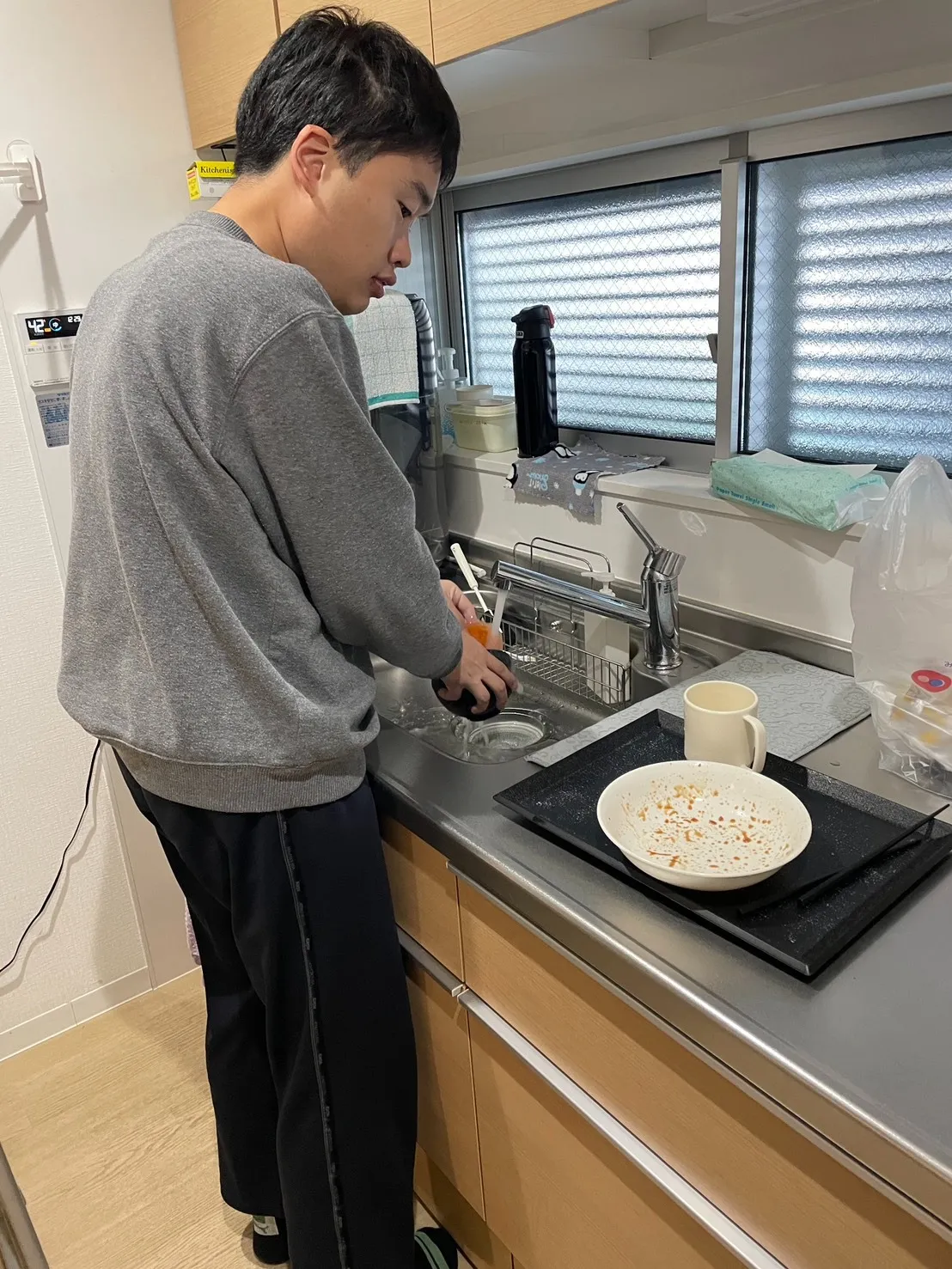 しっかりと食事を楽しまれたあと、使った食器を自ら台所へ運び、洗い物までしてくださいました。
