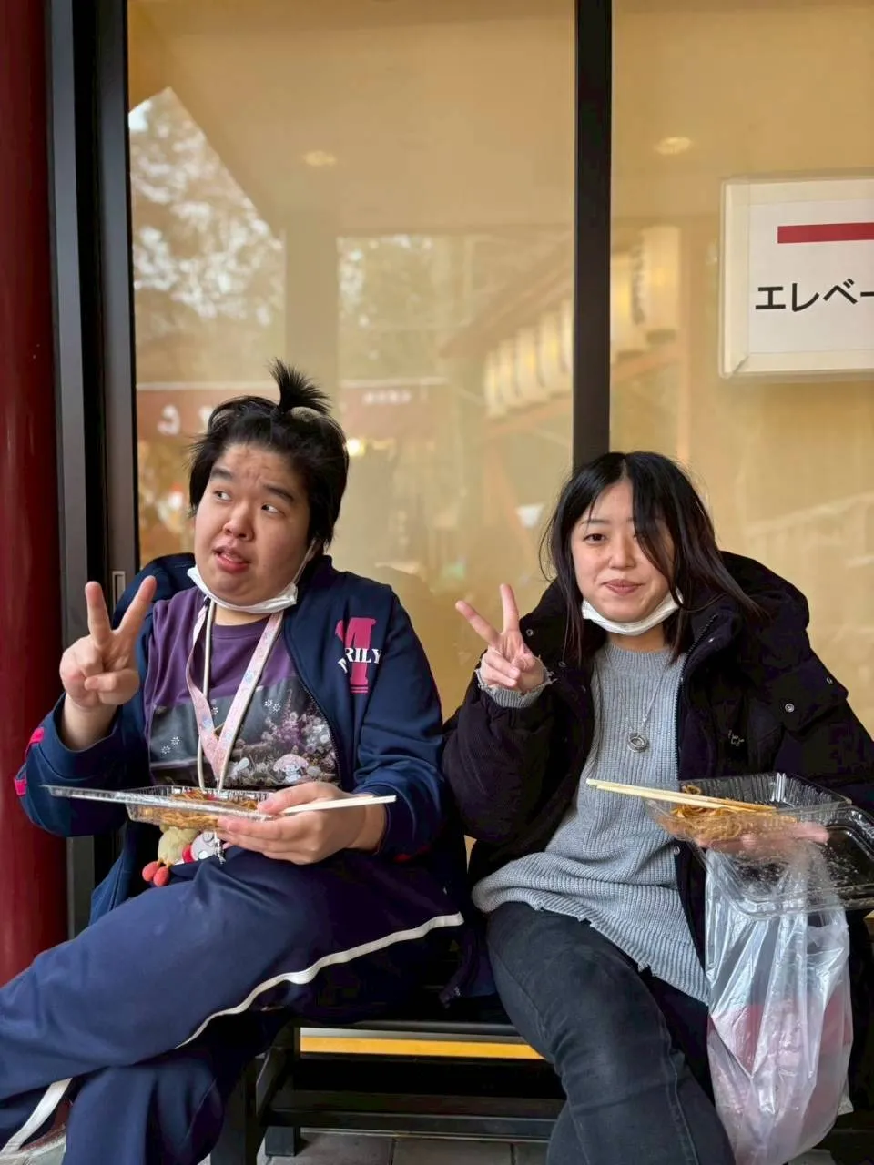 「何を食べようかな」と迷いながら選んだやきそばを手に、にこやかな表情がたくさん見られました。外で食べる温かい食事は、いつも以上に美味しく感じられますね。