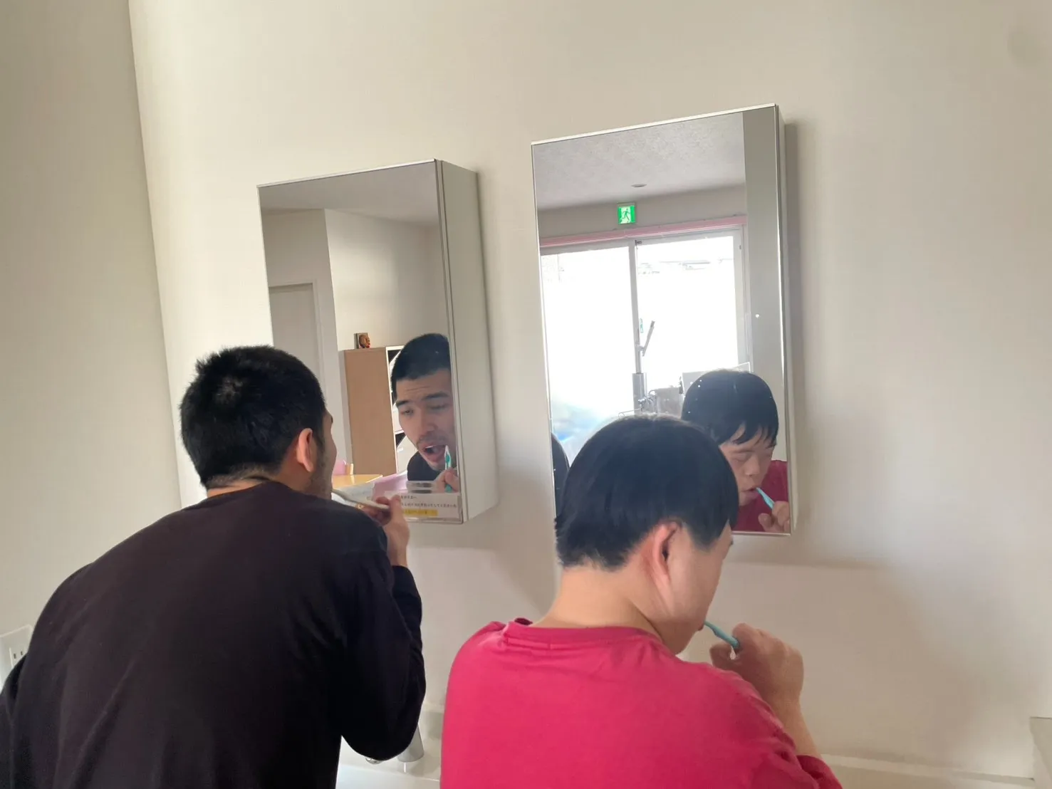 昼食を終えたあとは、洗面台へ移動して歯みがきの時間です。