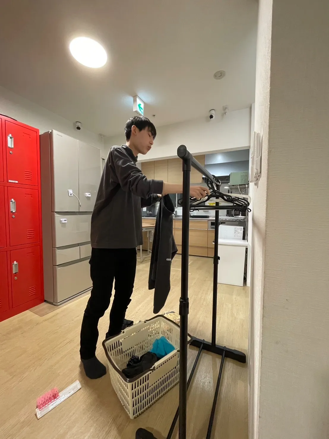 夕食を終えた後、自然な流れで洗濯物干しに取り組まれていました。