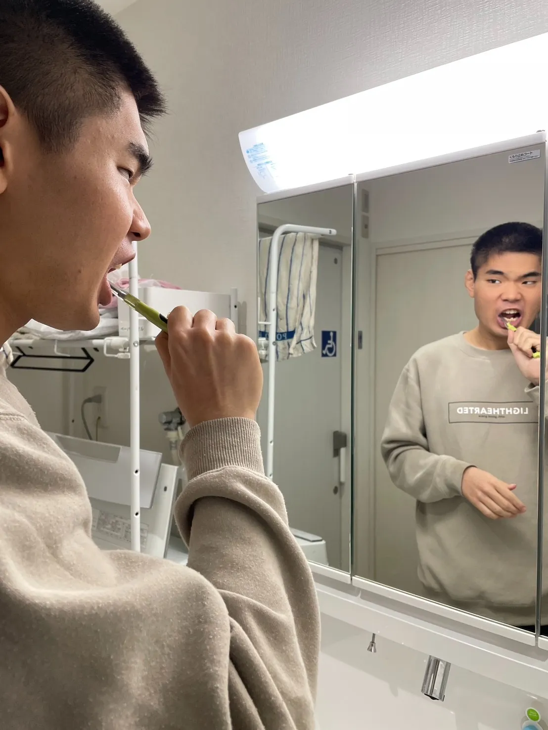 この日は、コップを洗う様子や、鏡の前で歯磨きをする様子を写真に収めました。