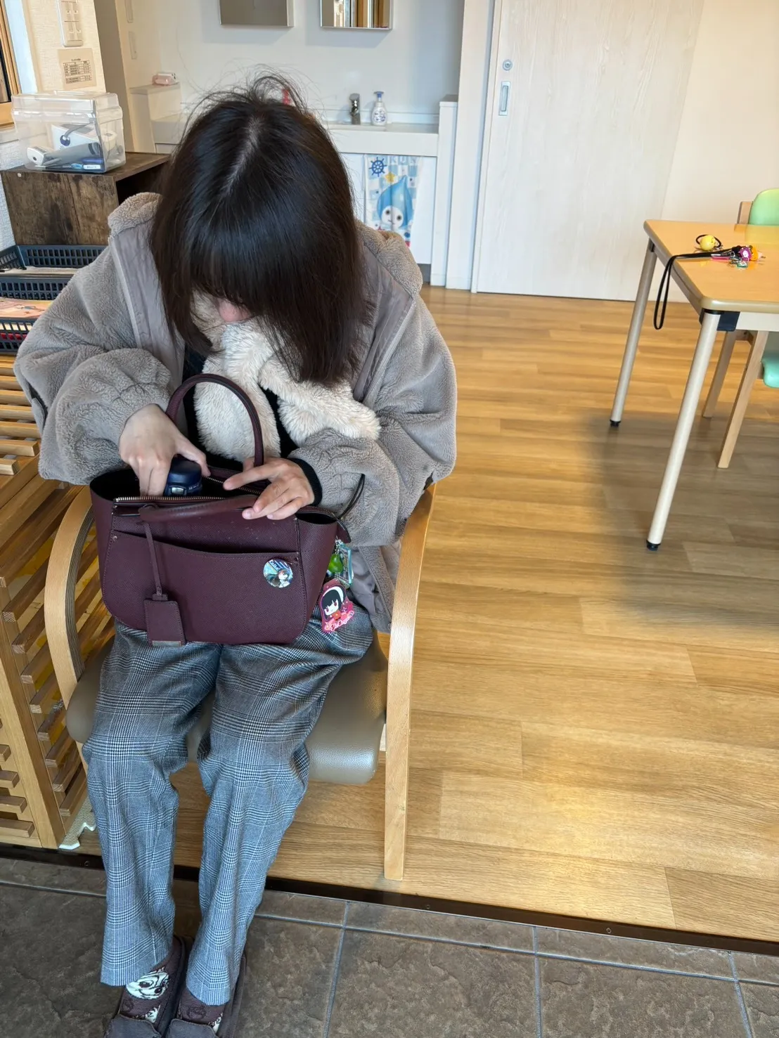 待っている間も、カバンをそっと開けて
