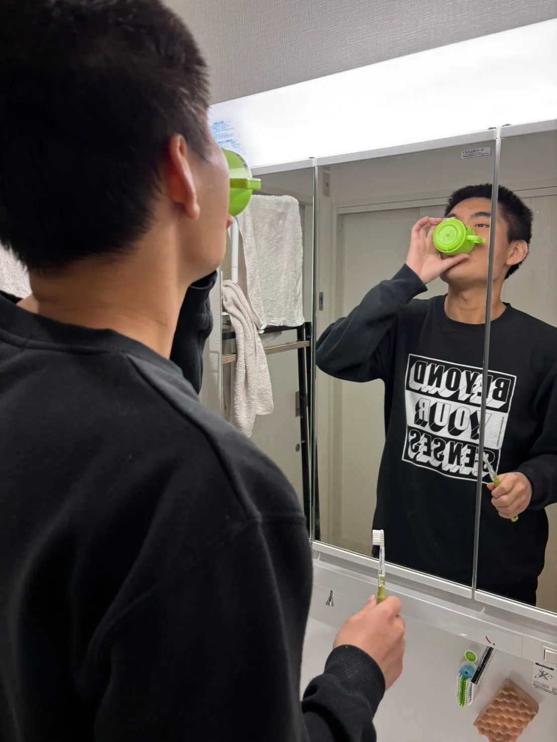 さらに、使い終わったコップと歯ブラシもご自身でしっかりと洗い、