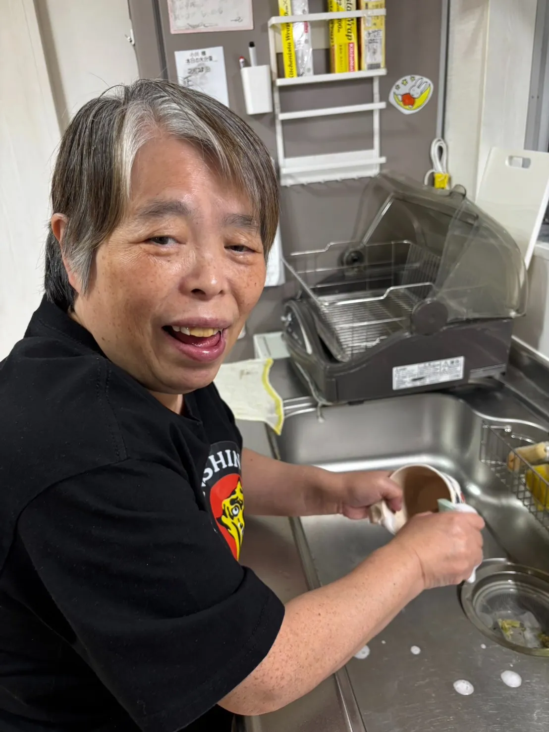 作業所がお休みの利用者様が、昼食後にご自身の使われた食器を洗っておられました(^^)