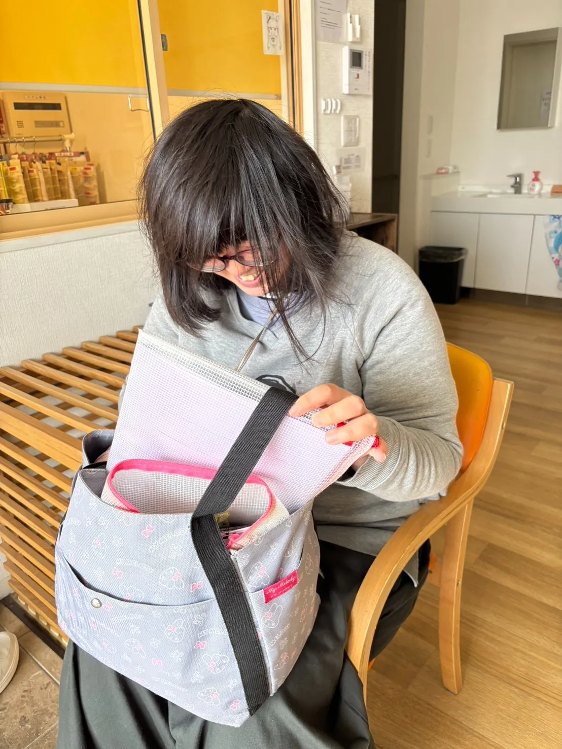 朝から身支度を整えられ、送迎車が来るまで玄関で椅子に座って待機されていました(^^)