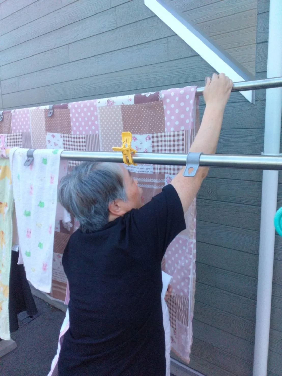午後になると、朝に干していた洗濯物を取り入れられました。