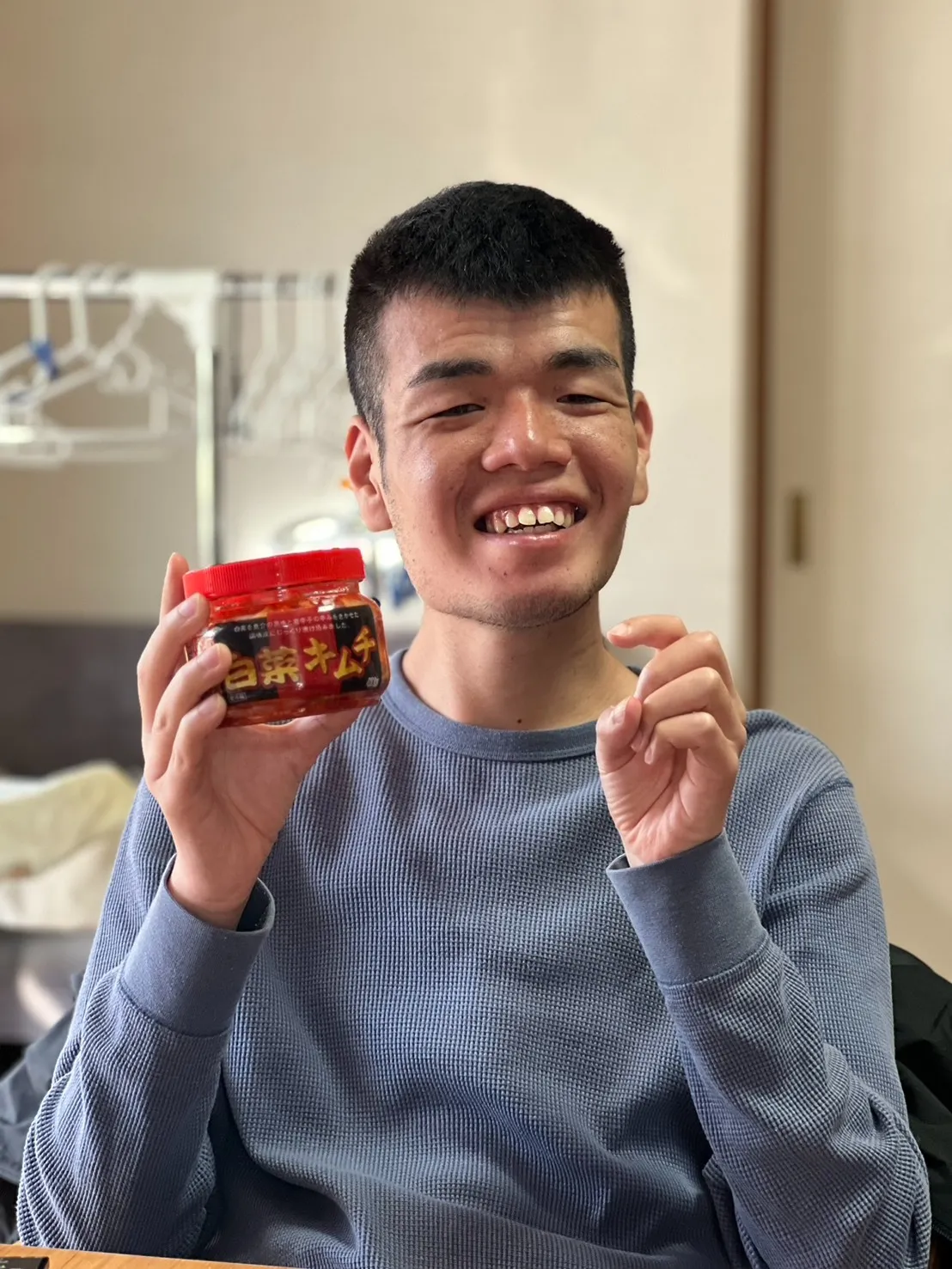 キムチを持って笑顔で見せてくださり、その嬉しそうな表情がとても印象的でした。