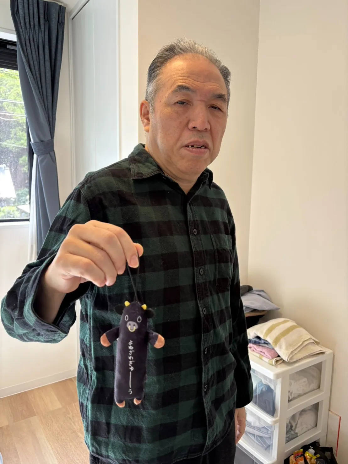 黒い牛さんのぬいぐるみを前に、「どこに飾ろうかな」と迷われているご様子で、お部屋の中を見渡しながら、ゆっくりと場所を選ばれていました♪