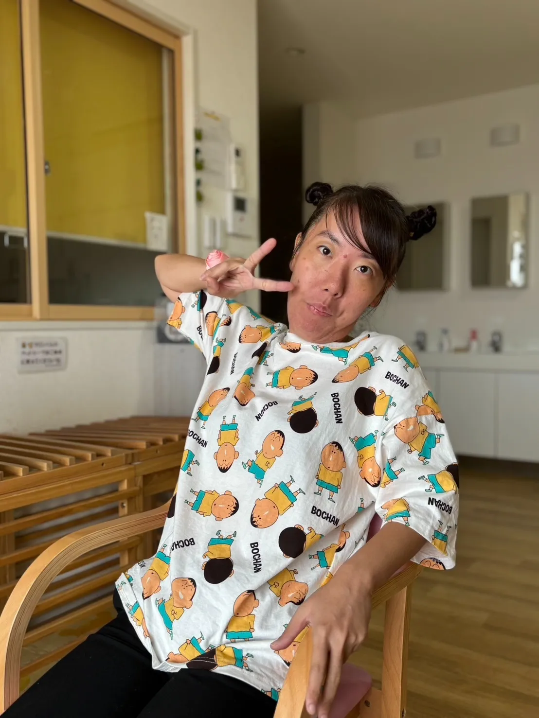 「可愛いTシャツで今日も元気に♪」 本日は土曜日ですがが、利用者様はいつもと変わらず休まずに作業所へ行かれました♪朝は可愛いTシャツ姿で登場され、椅子に座って「写メ撮って」と笑顔でお願いしてくださいましたので、パシャリと撮影さ…