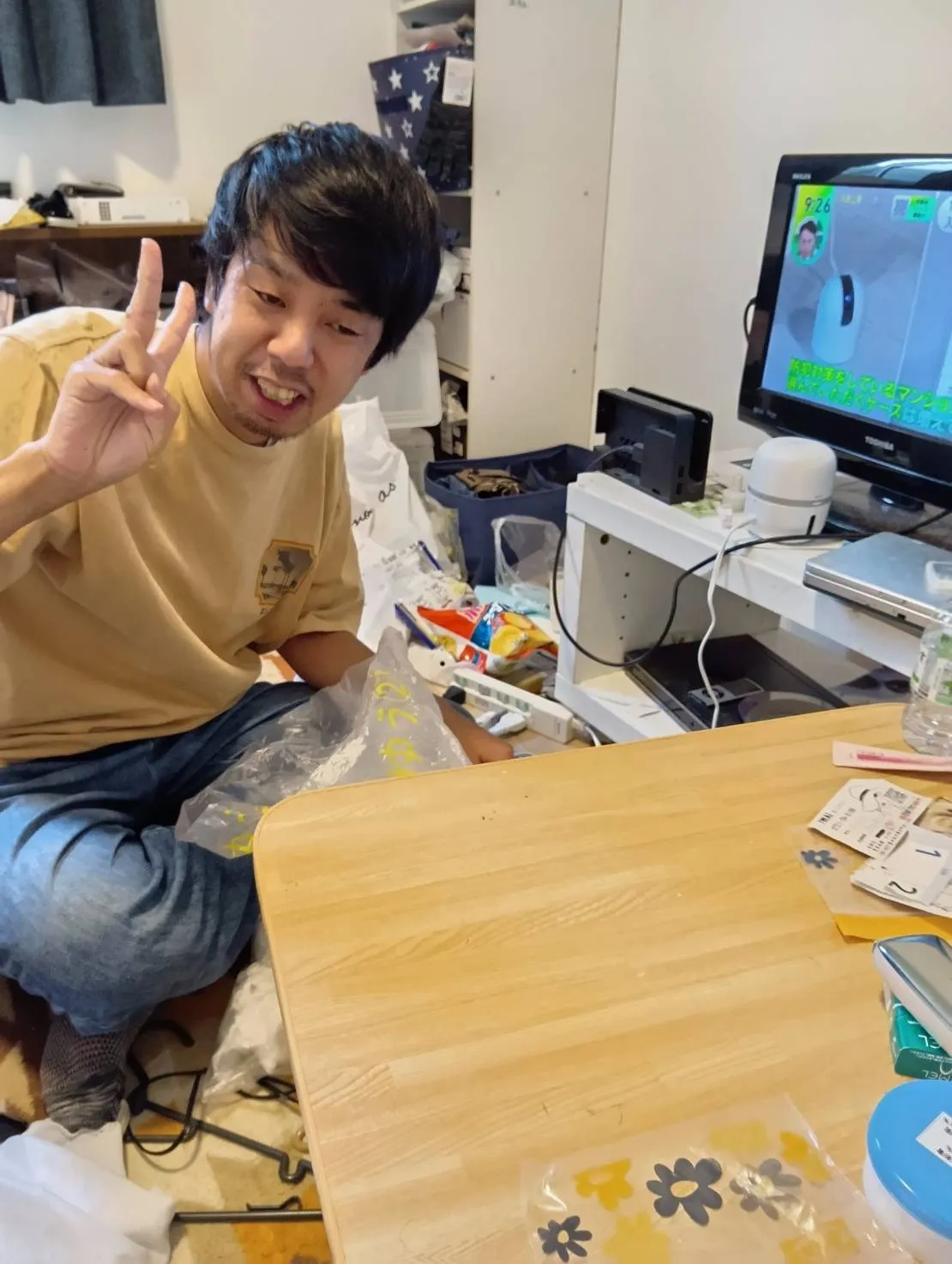 【朝の一コマです♪】 作業所へ出発されるまでの時間を使って、ご自身のお部屋を丁寧にお掃除されている利用者様の姿がありました。少しずつ片付いていくにつれ、自然と笑顔がこぼれていき、その表情に職員も心がほっこり(^^)…